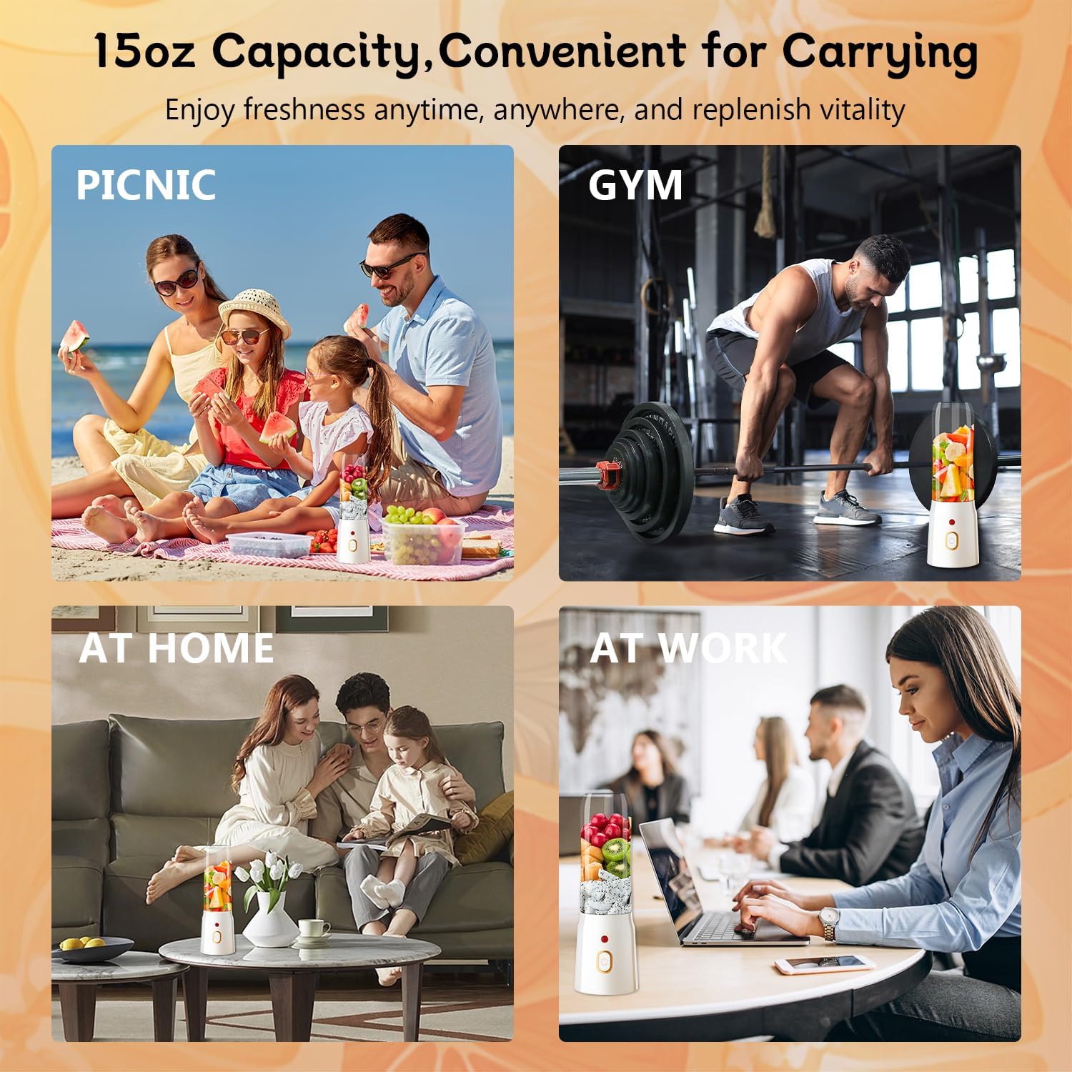 【🥑Rechargeable & Portable】Super endurance, upgraded to 1500mAh battery capacity, can make drinks 5-12 times when fully charged. The 500ml capacity perfectly meets daily needs, with a compact body and convenient portability.When you go to the gym or have an outdoor picnic, bring it with you to quickly replenish energy and enjoy delicious juice anytime, anywhere.