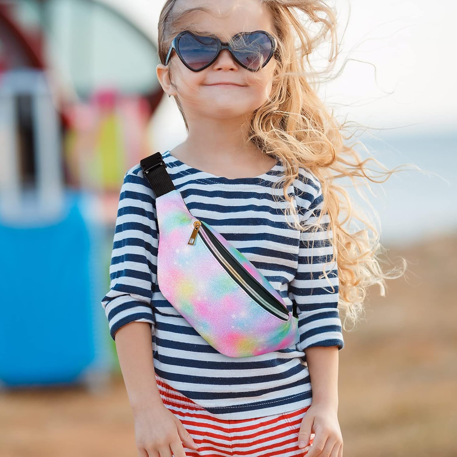QtGirl Fanny Pack for Kids, Glitter Waist Bag Shiny Bags with Adjustable Belt for Children Sport Running, Camping, Trip