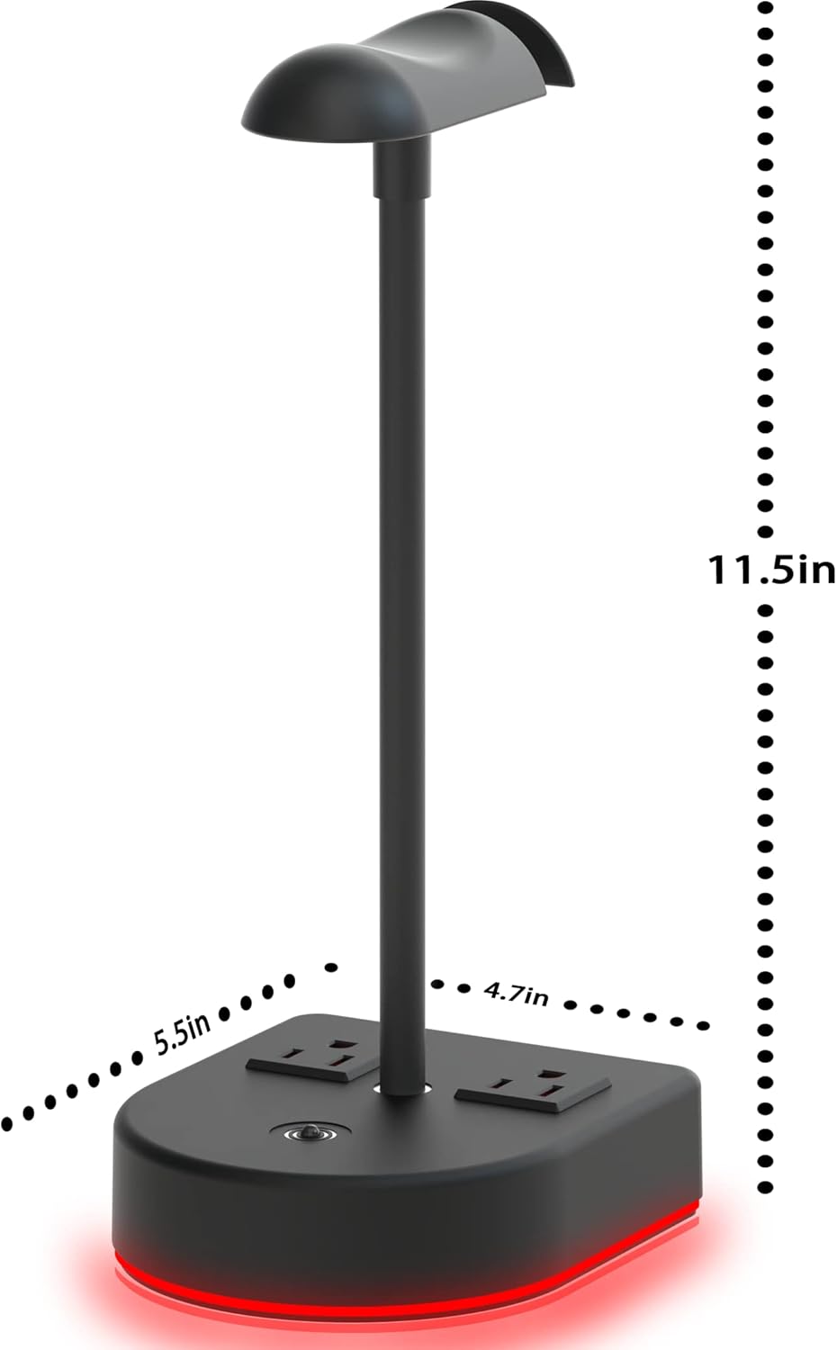 【 2 AC Power Oulets】Our headphone stand is equipped with a 2 AC Power Oulets. It is suitable for charging other charging devices (game controller, Bluetooth headset, watch,compatible with laptops, printers, ).Keep your desk clean,perfect gaming desktop accessory. A great gift for gamer, boyfriends, men, and sons.
