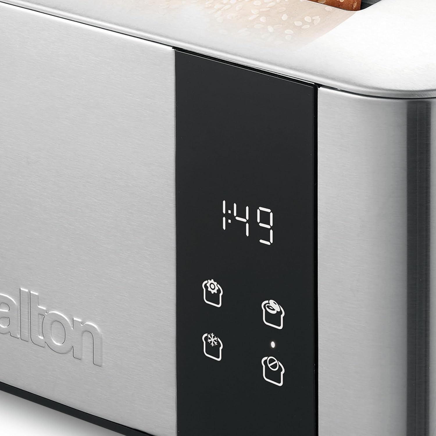 Salton Digital Long Slot Toaster, 4 Slice | Stainless Steel Countdown Toaster with Extra-Wide 1.5” Slots | Reheat & Defrost Function | One Size Fits All | For Bagels, Waffles, Artisan Breads, Pastries