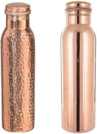 Set of 2 Pure Copper Water Bottle Flask Drinkware Ayurvedic Yoga Health Benefit