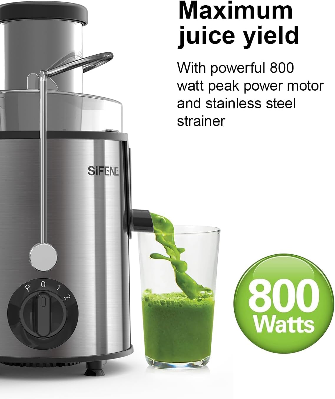 SiFENE Quick Juicer Machine, Centrifugal Juicer with 3″ Big Mouth for Whole Fruits & Veggies, Easy to Clean, Non-BPA Stainless Steel Kitchen Juicer