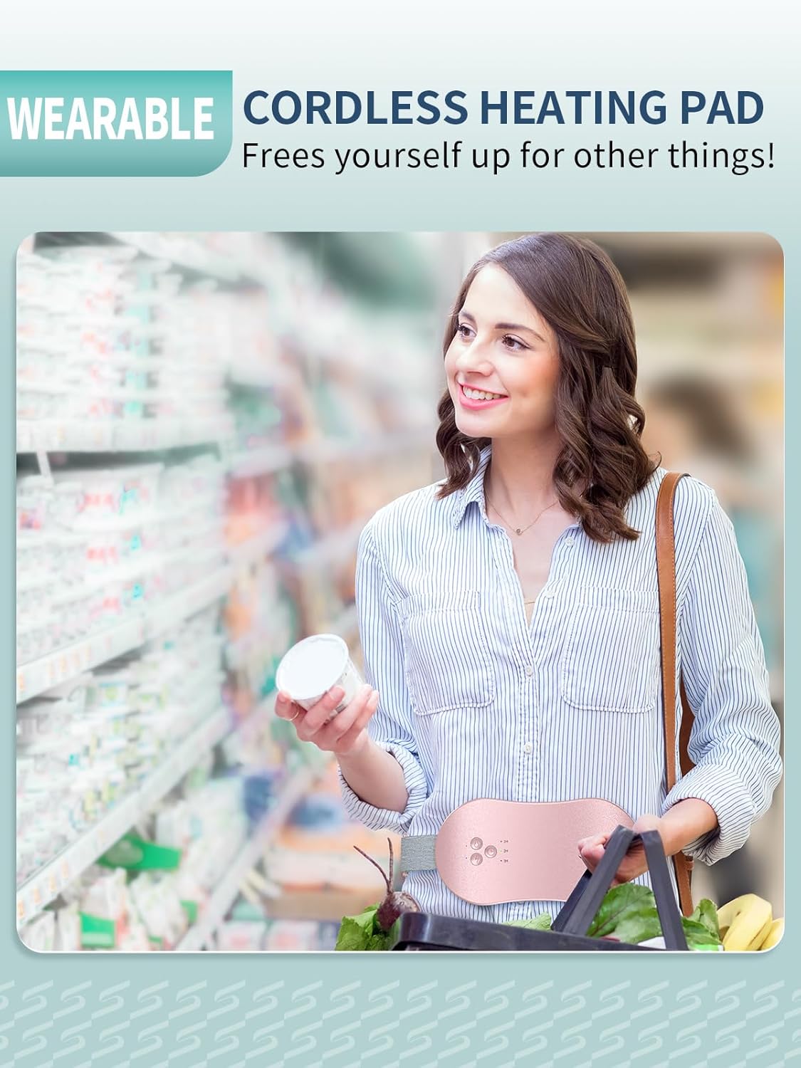 Ideal for Nurses: With its cordless, wearable design and long-lasting battery, this heating pad is perfect for nurses who need relief from period cramps and lower back pain during long shifts.