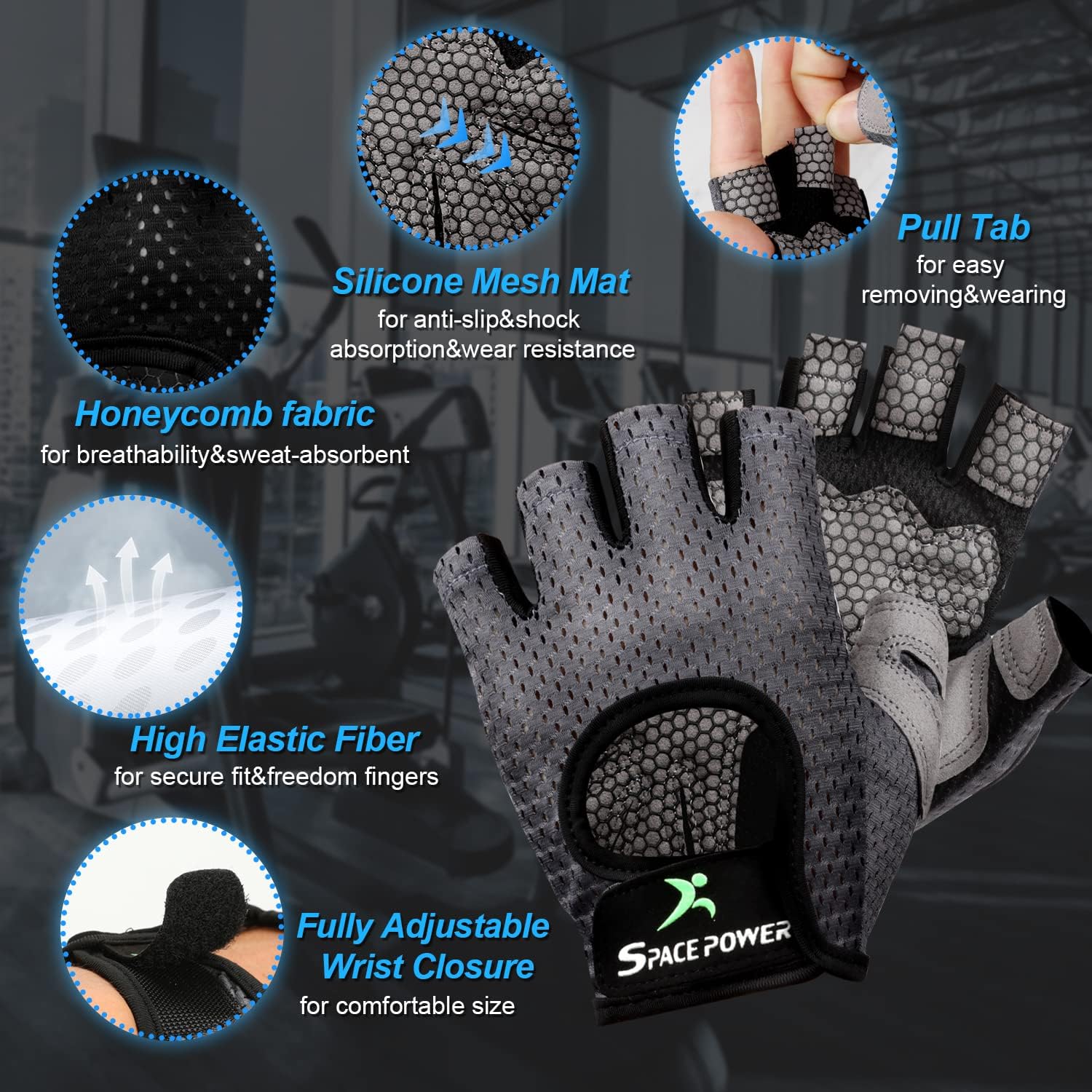 spacepower Workout Gloves, Weight Lifting Gloves for Women&Men, Lightweight Breathable Gym Gloves for Exercise