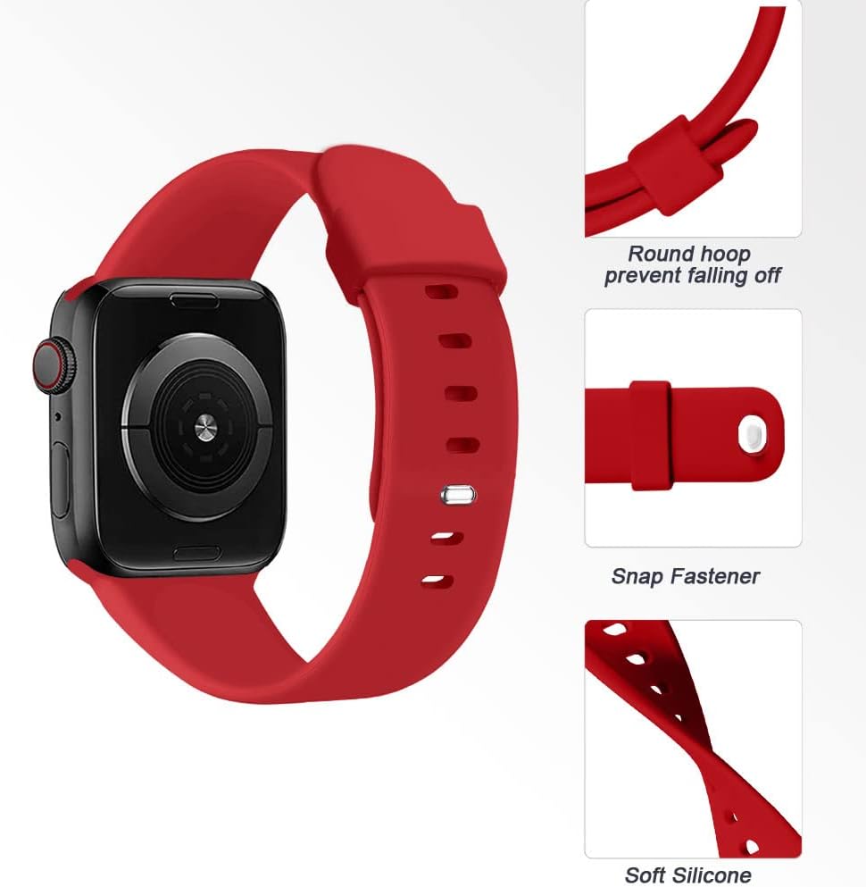 Sport Band Compatible for Apple Watch Band 45mm 44mm 42mm 41mm 40mm 38mm with Screen Protector Case, Men Women Soft Silicone Strap for iWatch Series 10 9 8 7 6 5 4 3 2 1 SE(38mm-Red)