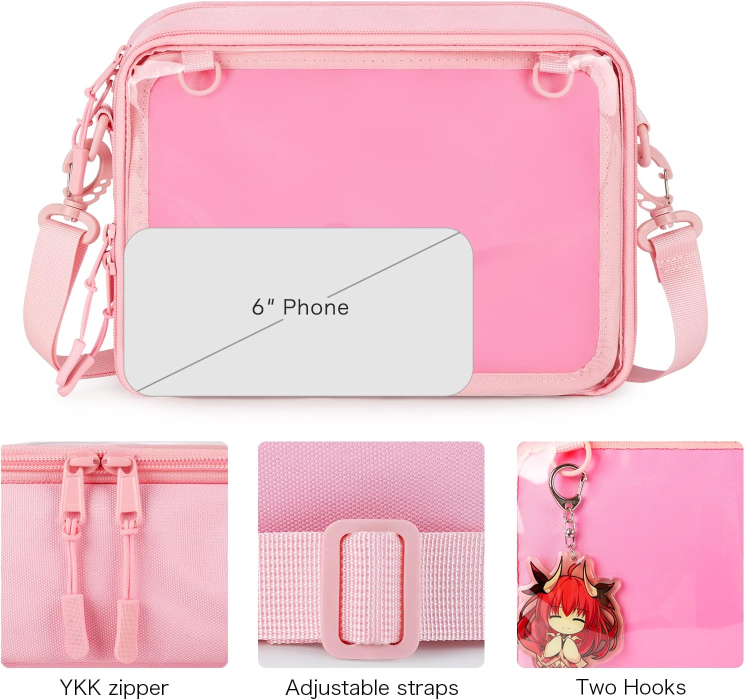 If you’ve already got a lot of anime stuffs, charms, plushies, badges, etc but still looking for new ways to show off them? Welcome to here, you will obtain the latest trend here. We offer several stylish ita bags, a personalized transparent window that help you make decorating easy, fun, and highly personalized. The plastic cover keeps your precious items safe and clean!
