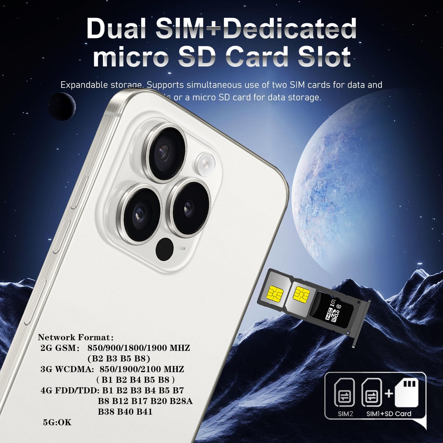 ✅【Global Band, Dual SIM Dual Standby 5G Mobile Phone】Support multiple bands dual card. unlocked phone will smoothly run multiple apps simultaneously with ease, meet your work and entertainment needs, such as T-Mobile, BTC, MetroPCS, H2O, Movistar, Telcel, Tigo, Claro, Vivacom, Ultra Mobile, and so on.