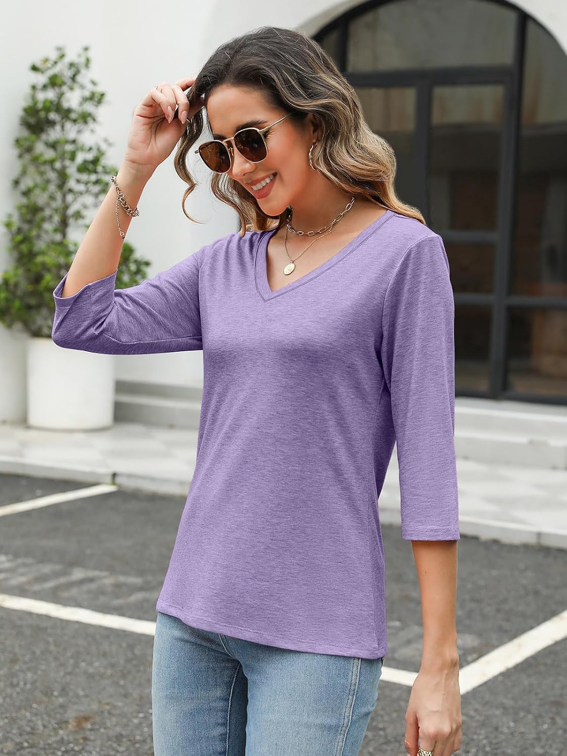 3/4 Length Sleeve Womens Tops ,Cute V Neck, Three Quarter Sleeve