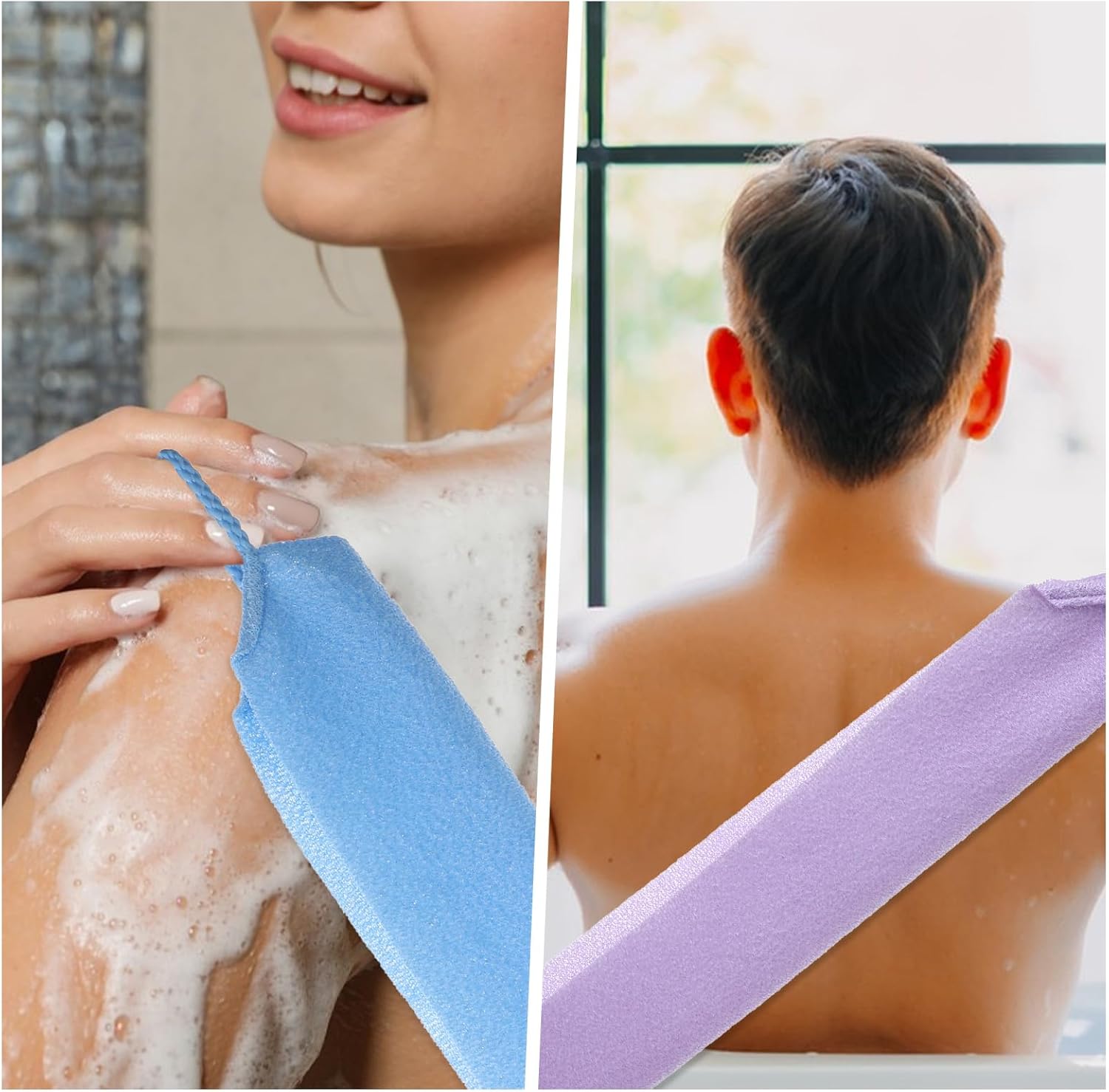【High-Quality Material】The shower scrubber is made of high-quality nylon material, body scrubber is soft to the touch and will not hurt your skin. You can confidently use this exfoliating washcloth, and the back scrubber will bring you a great experience.