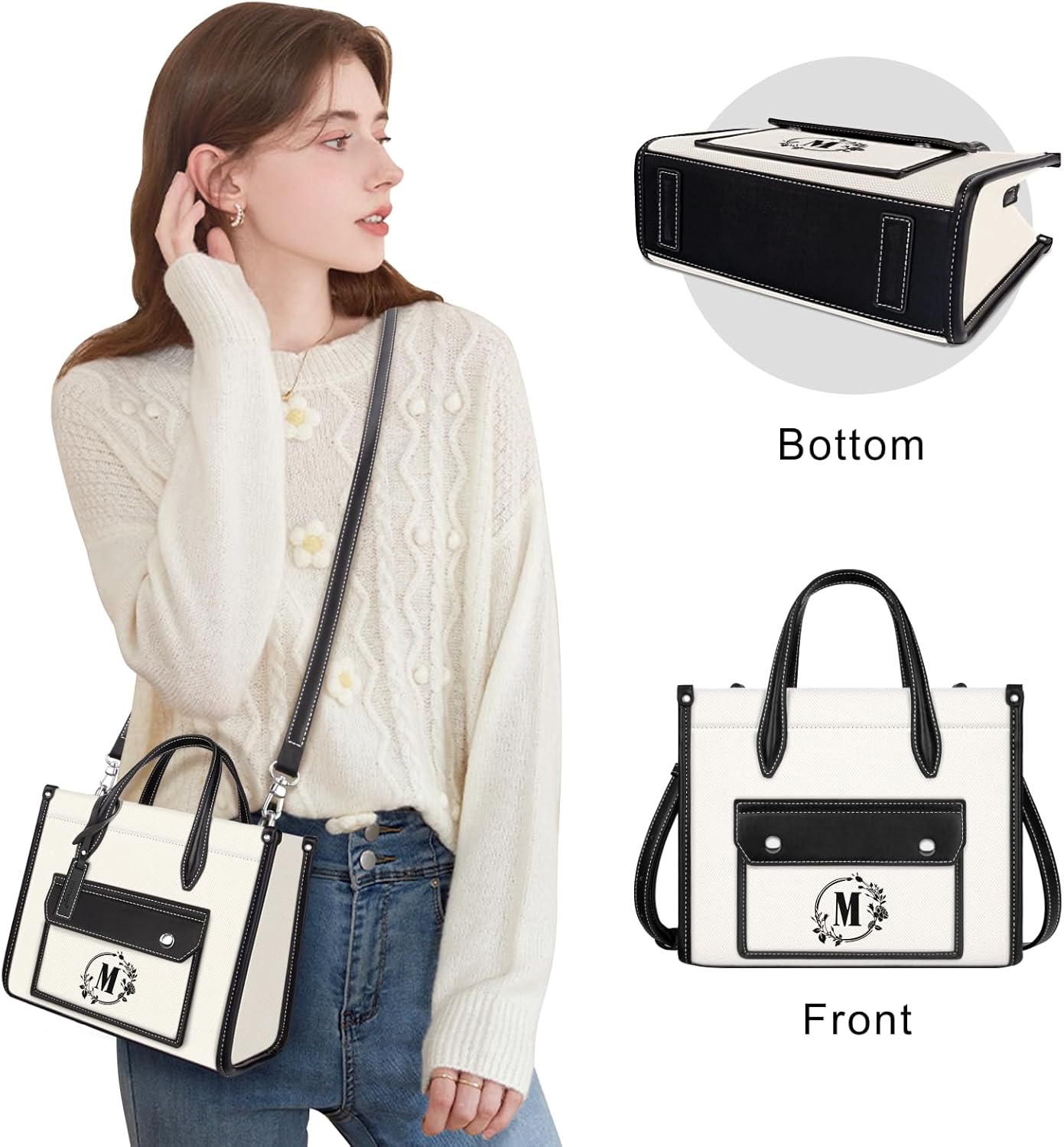 TOPDesign Monogrammed Small Canvas Tote Bag for Women, Personalized Initial Handbags, Top Handle Purse with Detachable Strap