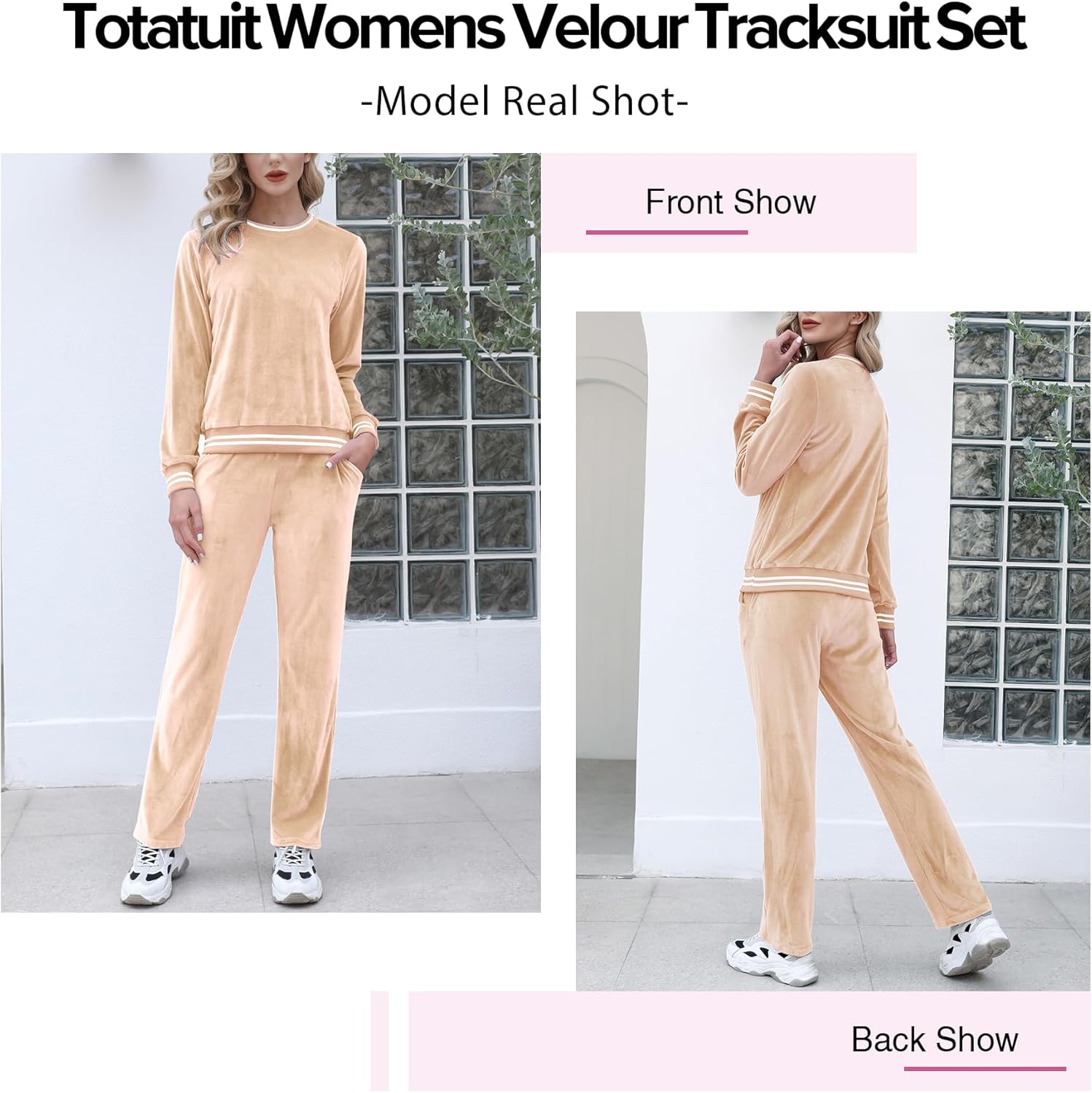 Totatuit Women’s Sweatsuit Set Velour Long Sleeve and Pants Sport Sweat Suits 2 Piece Tracksuits Outfits with Pocket S-XXL