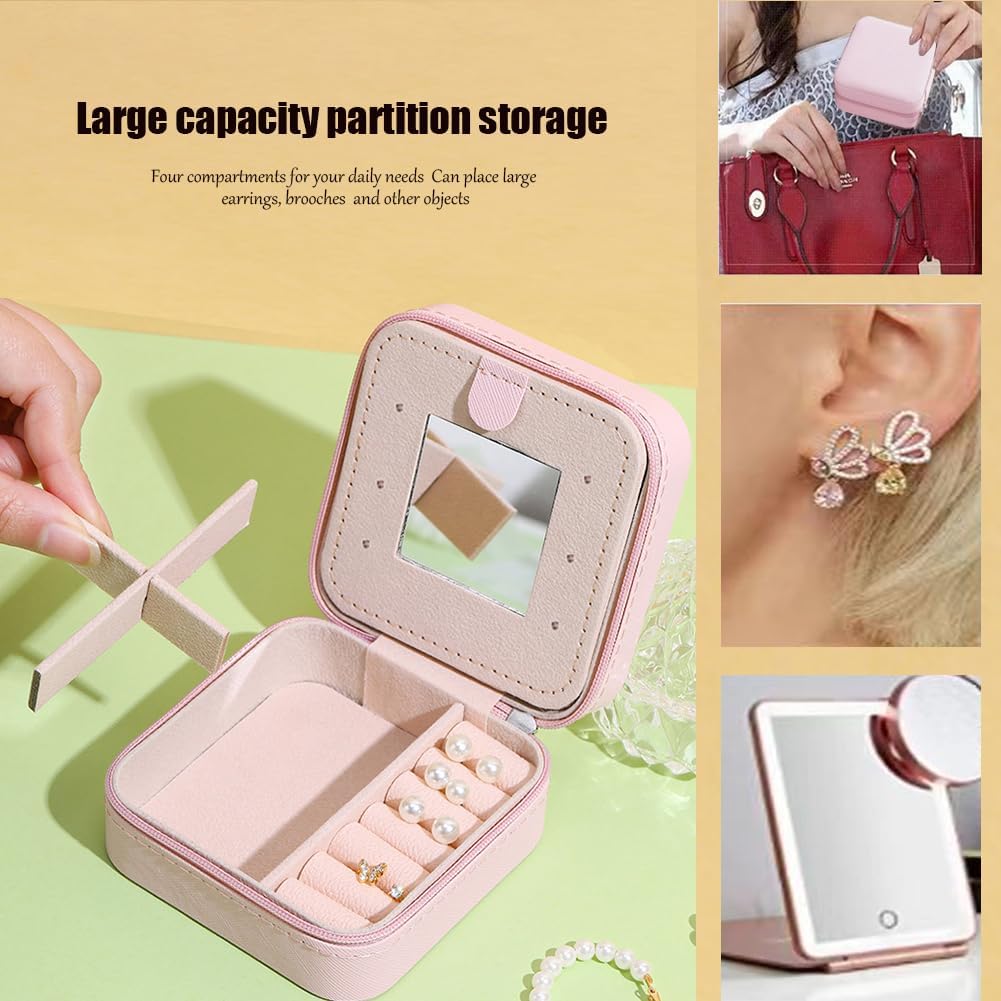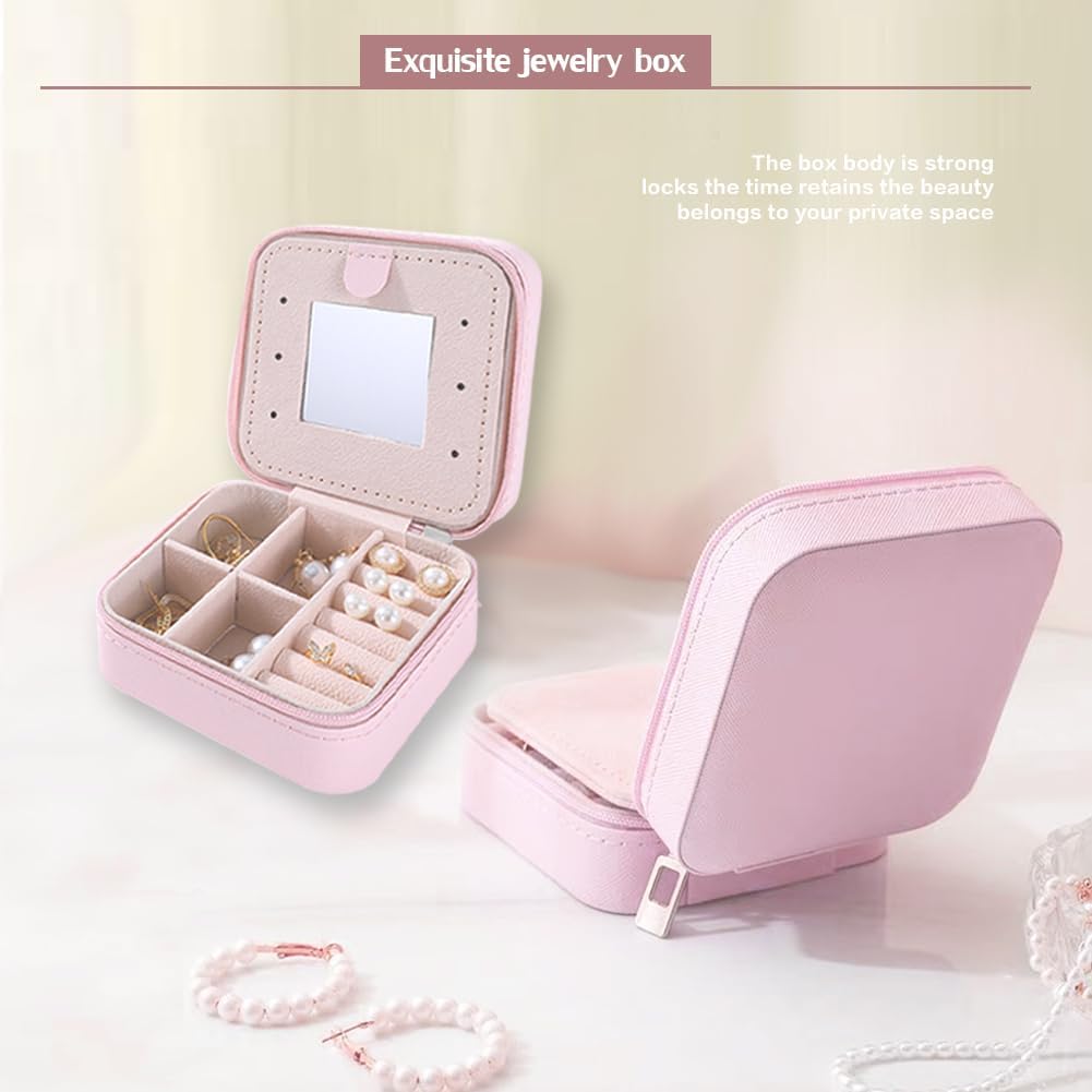 Travel Jewelry Box, Travel Jewelry Box with Mirror, Small Portable Organizer Boxes for Rings Earrings Necklaces Bracelets (Pink)