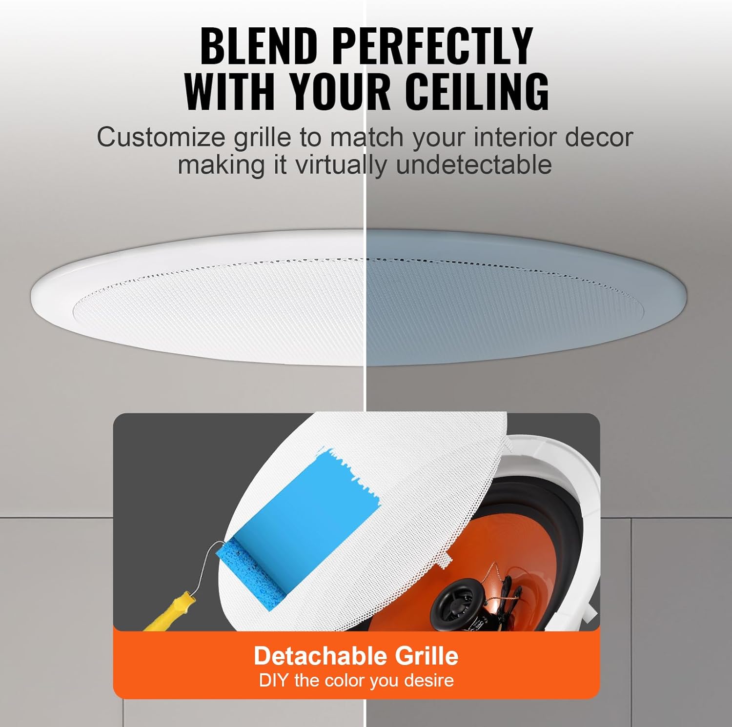 Detachable & Customizable Grille: Our easy-to-disassemble grille isn’t just about cleaning convenience—it’s about making your space truly yours. Paint the grille to match your walls for a flawless, integrated look that enhances your interior decor. Elevate your home’s style while enjoying pristine audio performance. Experience easy cleaning and endless customization!