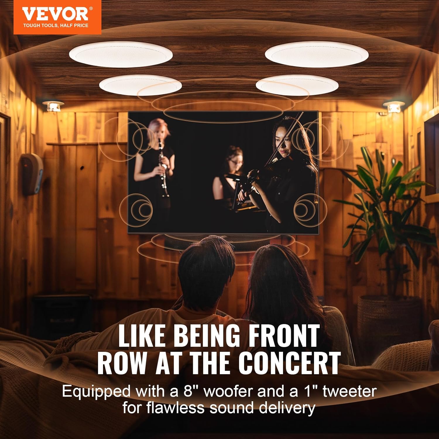 VEVOR 4 PCs 8 Inch in Ceiling Speakers, 100-Watts, Flush Mount Ceiling & in-Wall Speakers System with 8″ Woofer,1″ Tweeter, for Home Kitchen Living Room Bedroom or Covered Outdoor Porches