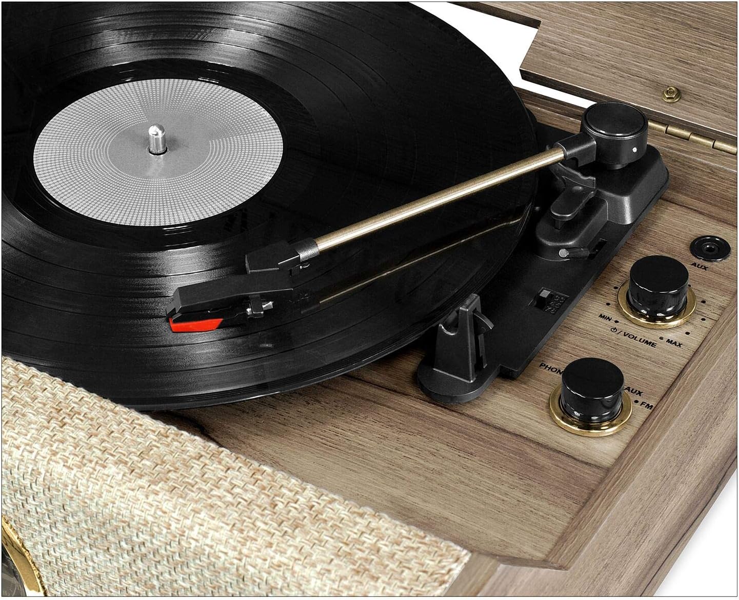HIGH QUALITY DESIGN & FINISHING – Victrola’s 115-year commitment to craftsmanship is evident in the stylish retro real wood case, strong hinges, high quality fabric grilles, gentle lifting mechanism and well-balanced sound