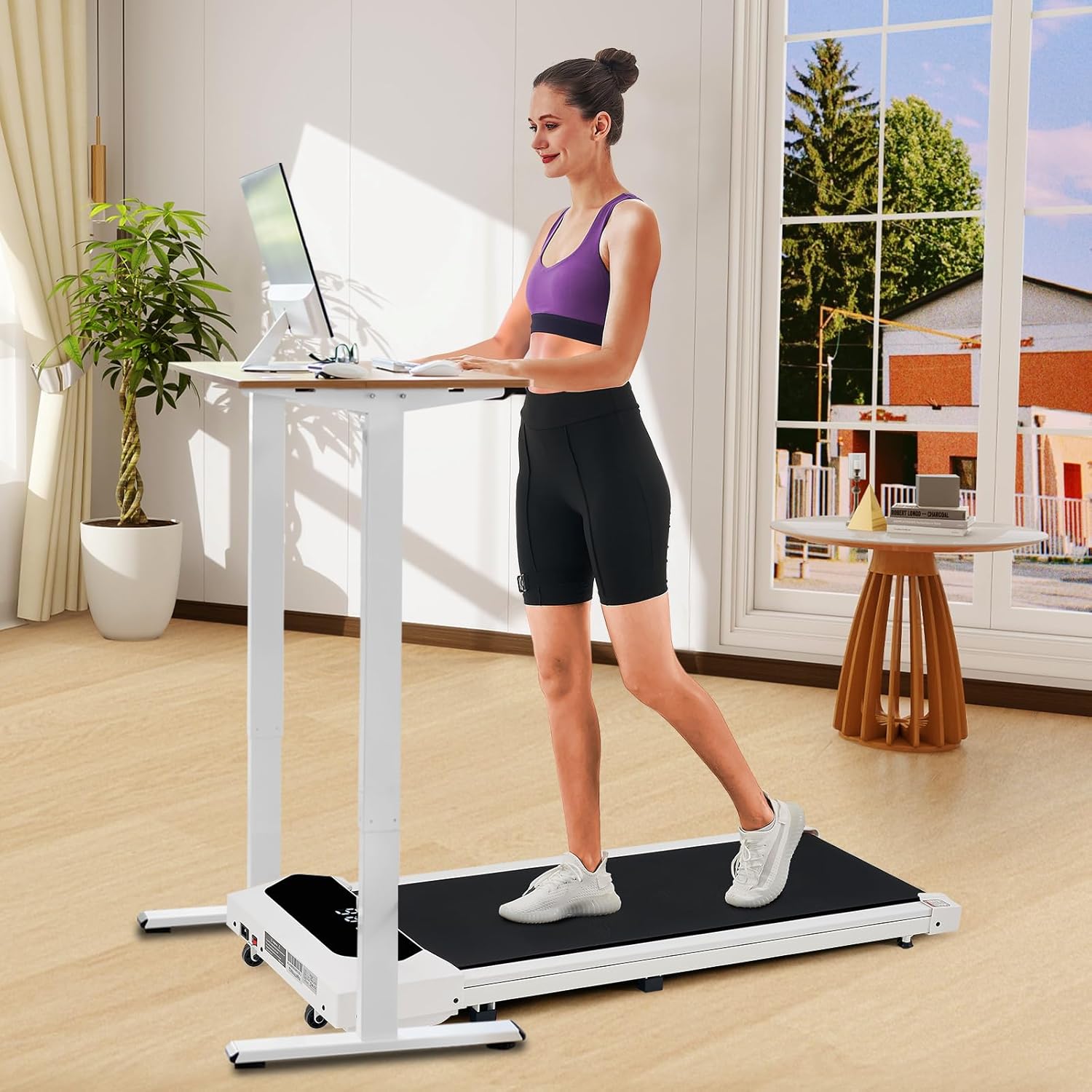 【Portable and Compact & Installation-free】The under desk walking pad weighs only 42 lbs and is designed with two front moving wheels, allowing you to easily store it under the bed, sofa, or desk when not in use, perfectly saving your space. To provide a better purchasing experience, our small walking treadmill does not require assembly upon arrival and can be used directly after unpacking. If you have any questions about our product, please feel free to contact us.