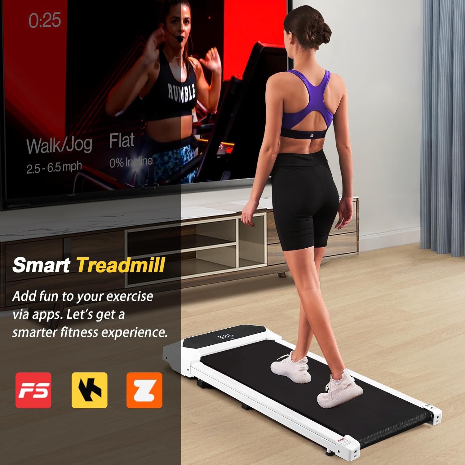 【Multi-functional Display & Remote Control】The LED display screen clearly shows the speed, time, distance, and calories, allowing you to monitor your exercise progress in real time and easily view your workout data. The remote control and smart app are convenient for you to adjust the speed or stop at any time. The speed range is 0.6MPH-3.8MPH, and you can choose different speeds for walking or jogging according to your needs.