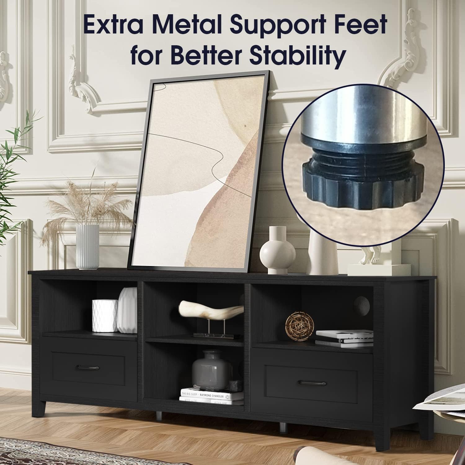 【70″ Wide TV Stand】70″L x 15.3″W x 24.8″H, a long TV stand perfectly fits flat curved screen TVs up to 65″, 70″, 75″ 80″+for a comfortable viewing experience, suitable for most home TV placement. Not only that, WESOME TV Stand can be also served as a storage cabinet in your bedroom, a buffet sideboard cabinet in your kitchen or dining room, adding a dash of retro style to your home.