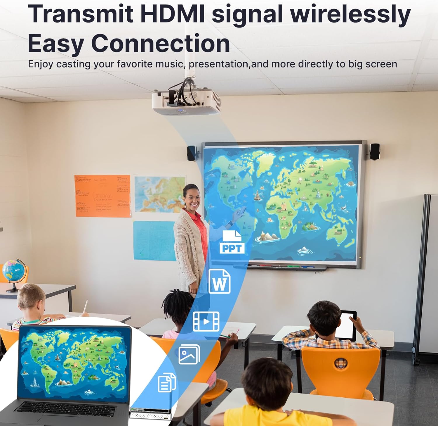 Wide Compatibility- Wireless HD Extender 1080P kit is highly used . HDMI wireless interface can be used directly, and the device without HDMI interface can be used with HDMI converter.The wireless HDMI transmitter receiver support for android phone, macOS and iOS iphone,window screen sharing,It’s perfectly suitable for School, Office ,Home,such as multimedia education K12 high school ,church,training, business presentation in meeting room, conference, watching movies,home theater with your family