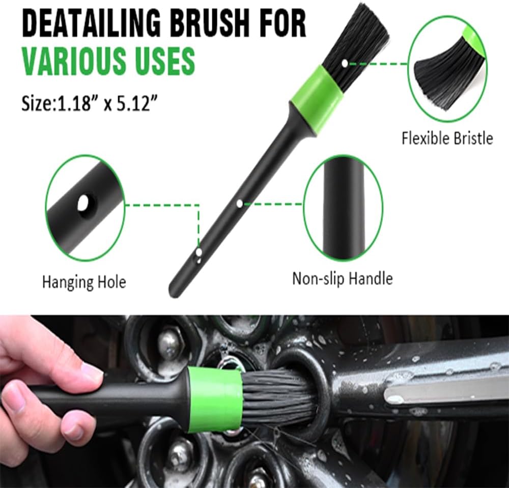 Complete Wheel Detailing Set: Our auto detailing brushes include a 6-piece selection of car cleaning brushes with Car Detailing Brushes x 1, Tire Brush x 1