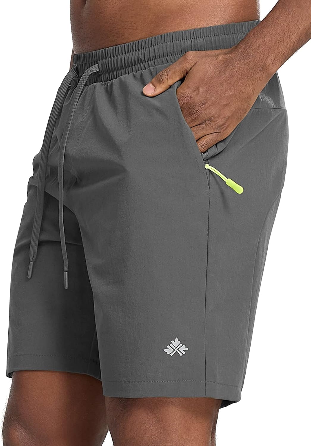 Zengjo Men’s Running Shorts No Liner 7 Inch Lightweight Gym Workout Athletic Shorts Zipper Pockets Quick Dry Waterproof